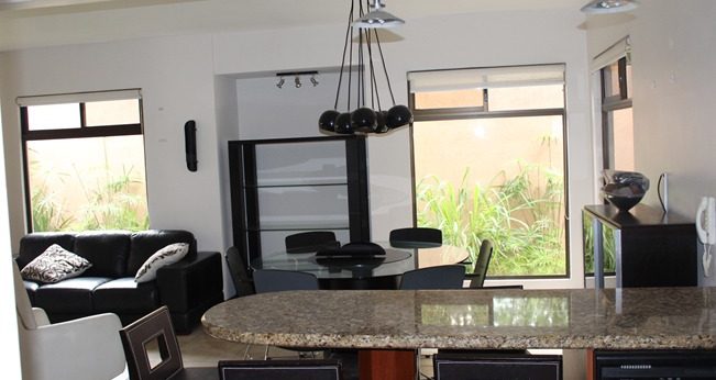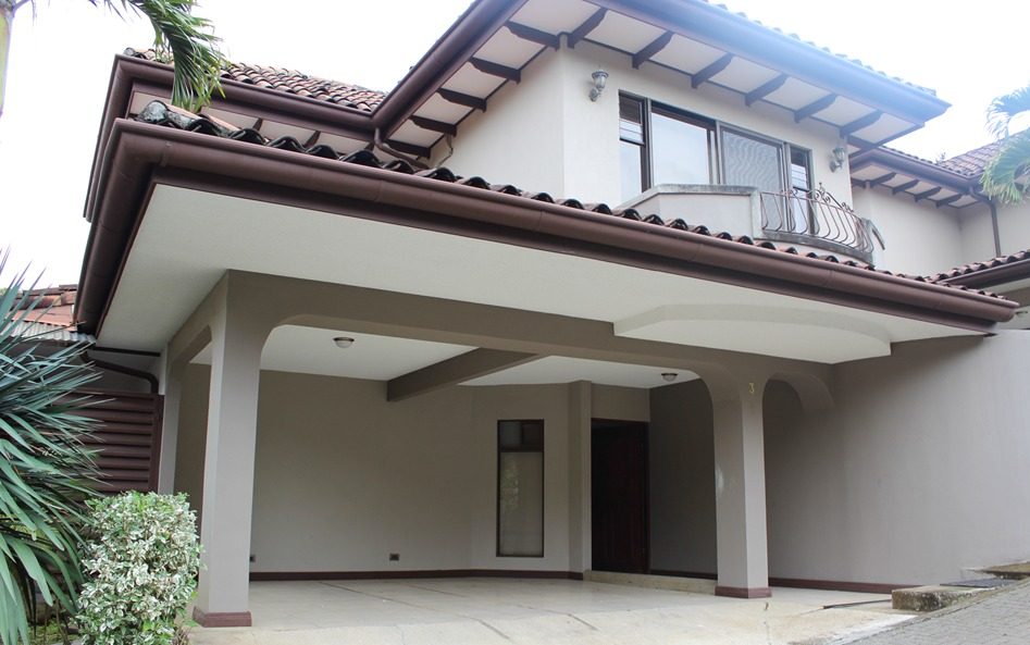Se alquila casa de 2 plantas y amueblada ubicada en condominio en Guachipelín de Escazú, San José. El inmueble cuenta con 4 habitaciones, 1 cuarto de servicio, A/C, terraza, 3 baños, es de 265 m2 de contrucción y parqueo para 2 automóviles. Cuenta con patio, áreas verdes, áreas para niños y seguridad 24/7.