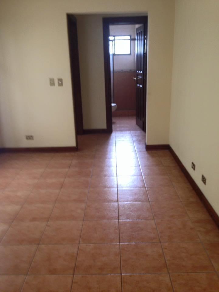 Se alquila apartamento ubicado en segundo piso en edificio en Escazú, San José. El inmueble cuenta con 3 habitaciones, 2 baños, sala de TV, sala, comedor, cocina, lavandería, parqueo para 2 automóviles, es de 140 m2 de contrucción. Cuenta con seguridad 24/7 y no tiene áreas comunes.