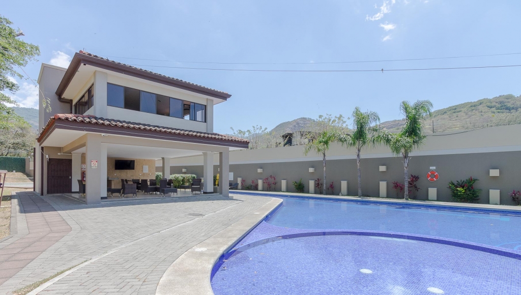 Se alquila casa de 2 plantas ubicada en condominio en Santa Ana, San José. El inmueble cuenta con 3 habitaciones, 2.5 baños, sobres granito y marmol, muebles italianos, sala de TV, área pilas, jardín trasero principal con w/closet, parqueo para 2 automóviles, el terreno es de 220 m2 y 160 m2 de contrucción. Condominio con piscina, gym, tenis, áreas verde y seguridad 24/7.