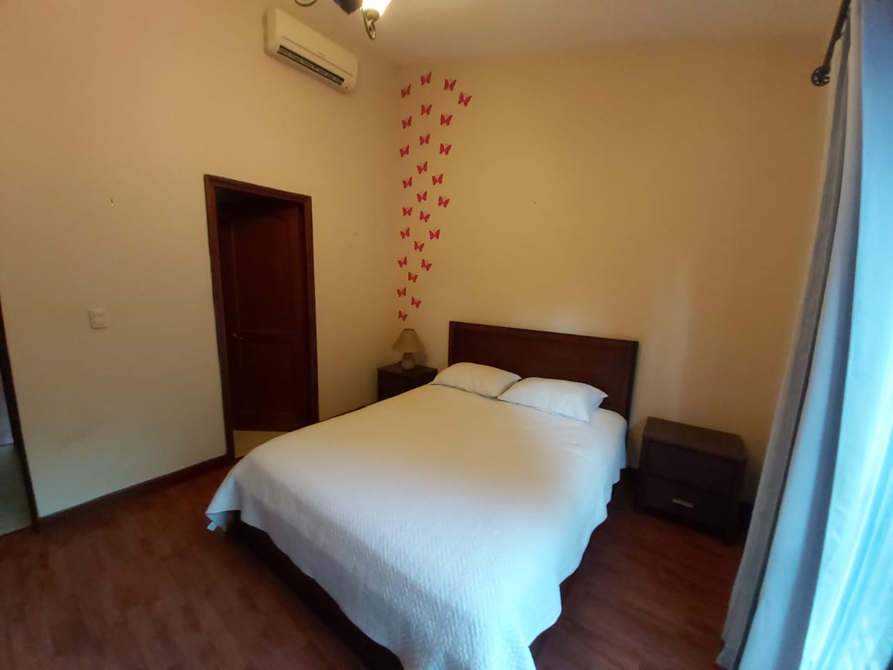 Hermosa casa amplia y totalmente amueblada ubicada en un lujoso residencial en Brasil de Mora de Santa Ana. Vivienda es de 2 plantas, tiene 183 m2 de construcción, 2 amplios dormitorios con walkin closet y espacio para una cama King, closet Hoggan muy amplio en cada habitación con baño propio incluido, 1 habitación pequeña con su baño incluido, 4 amplios baños con servicos. Amplios dormitorios con balcones y AC en todas las habitaciones, incluye cable e internet. Ubicado en zona de alta plusvalía, muy cercana con importantes centros de población, portón vehicular eléctrico con guarda 24/7.