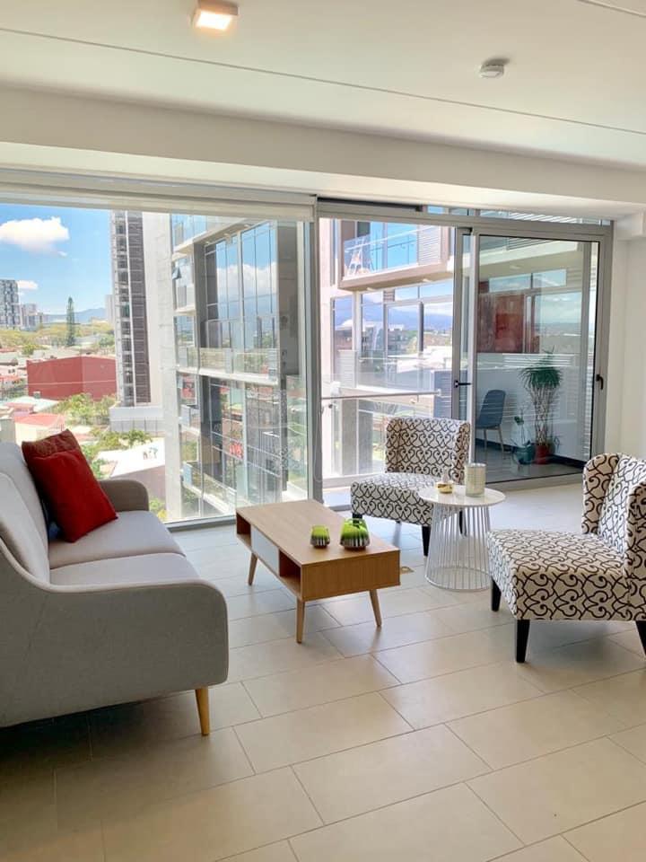 Se alquila apartamento ubicado en condominio en Rohrmoser, San José. El inmueble cuenta con 2 habitaciones, 2 baños y parqueo para 2 automóviles. Cuenta con piscina, gym, sauna y seguridad 24/7.