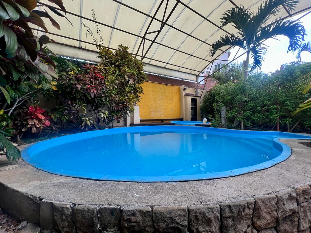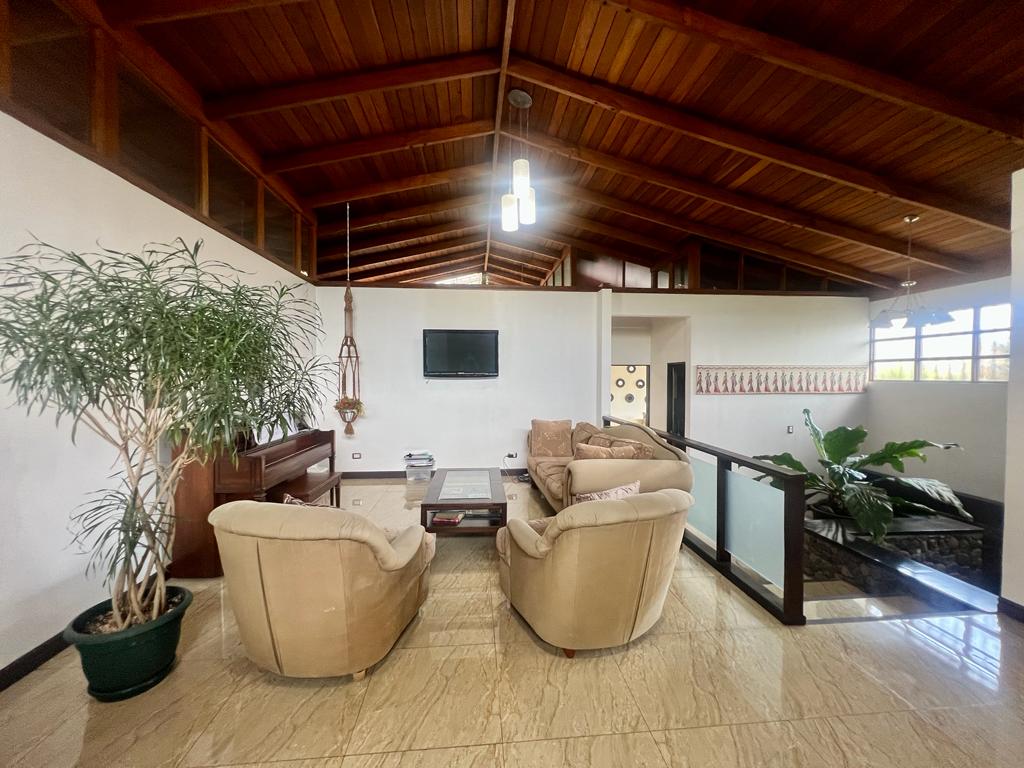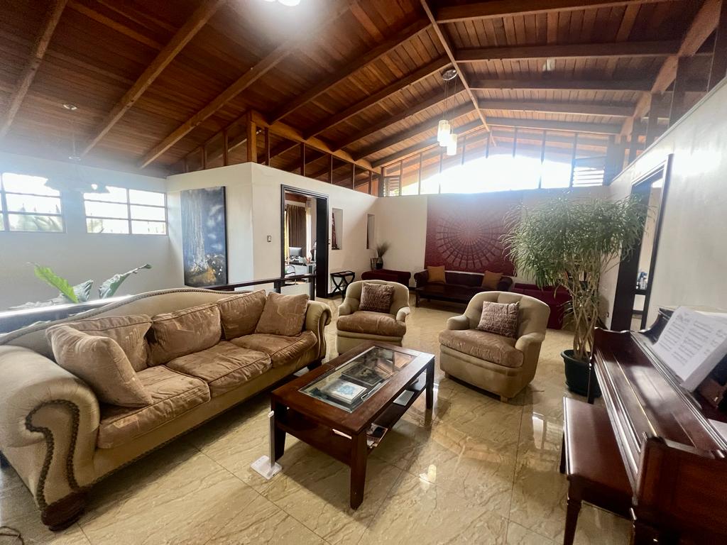 3 parqueos , 4 habitaciones , 4 baños. 2 salas , comedor , cocina granito. oficina , 1 cto servicio . terrazas , patio jardines . ubicada por el Country Club , seguridad. piscina y jacuzzi , rancho BBQ.