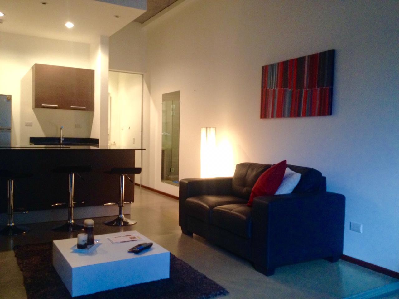 Se alquila apartamento amueblado en Santa Ana, San José. El inmueble es tipo estudio y cuenta con 1 habitación, 1 baño, tiene A/C y parqueo para 1 automóvil.
