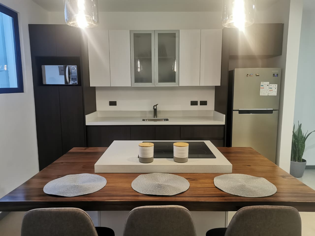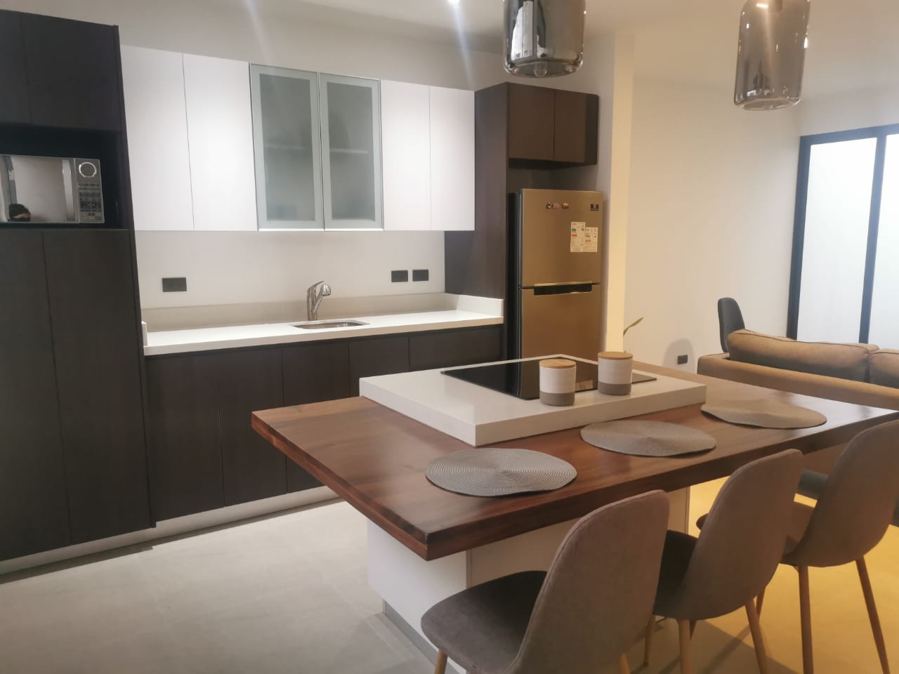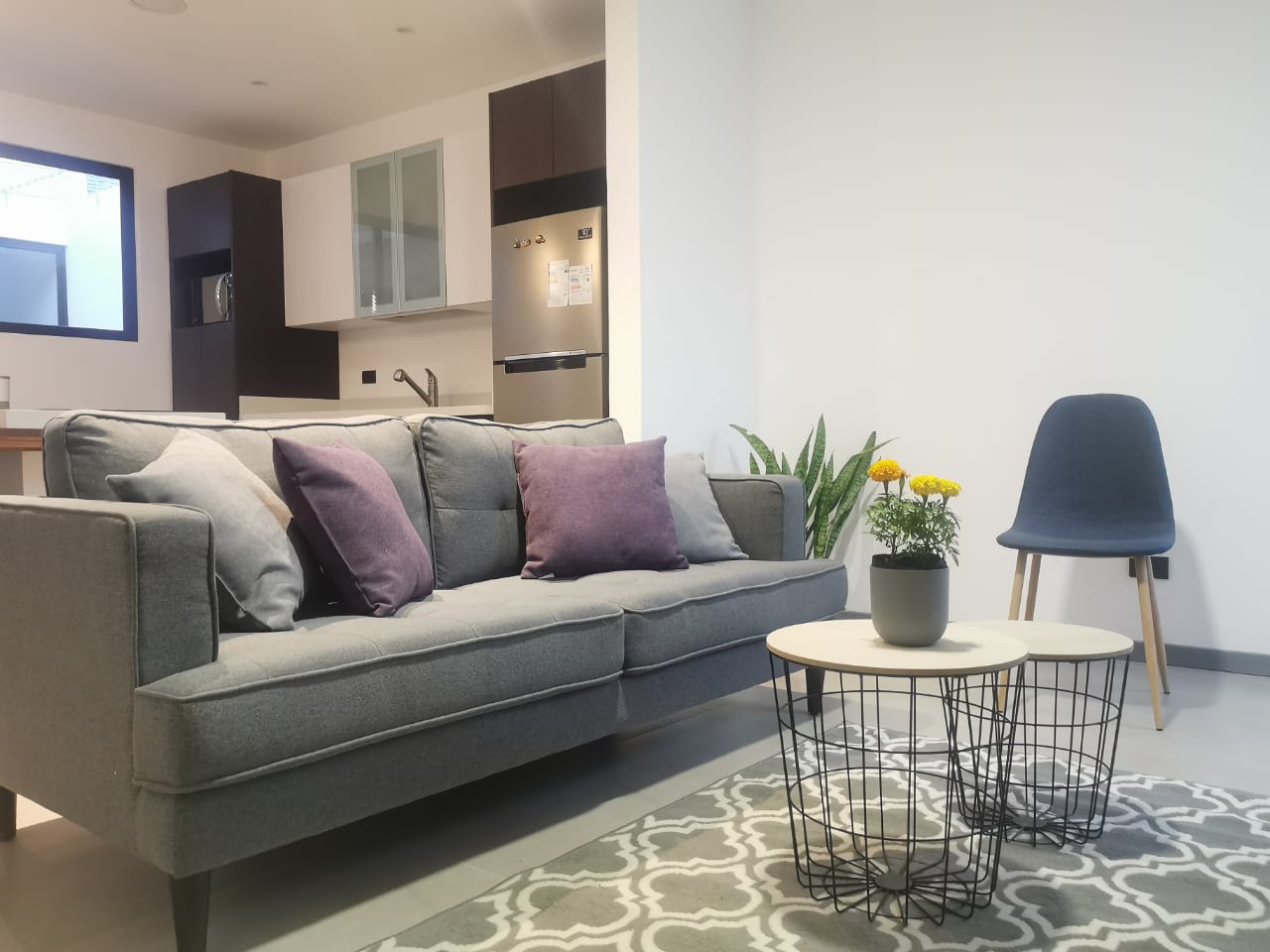 Servicios Incluidos: Agua, electricidad, cable, internet de 20mgbs. Cuenta con Smart TV de 49 pulgadas, sillón, sillas, cama matrimonial con colchón ortopédico Premium, refrigeradora, plantilla de vitroceramica de 4 discos, horno microondas, coffee-maker programable, menaje de cocina completo, lavadora automática, etc. Se puede aceptar mascota a discreción con un costo adicional.