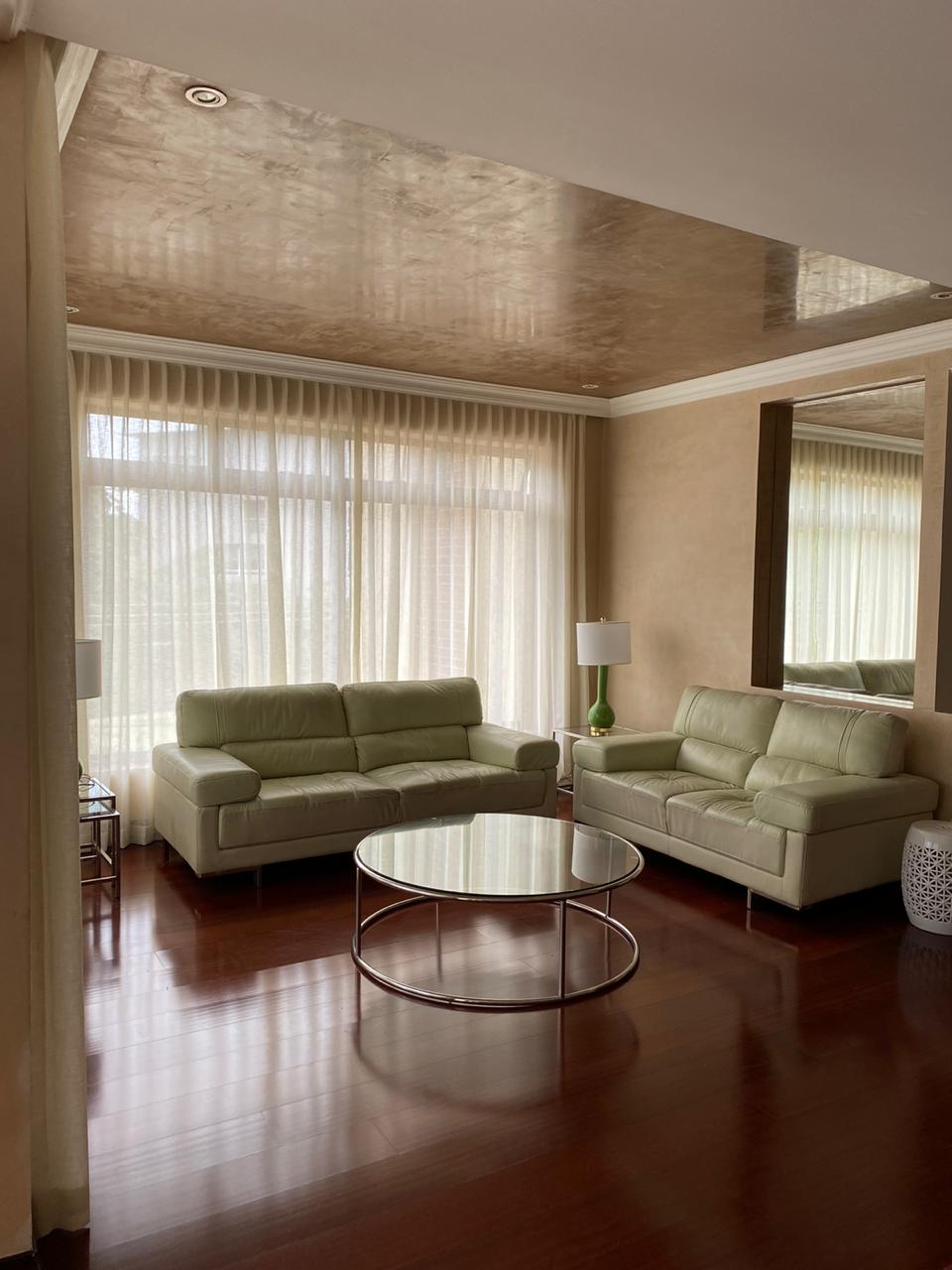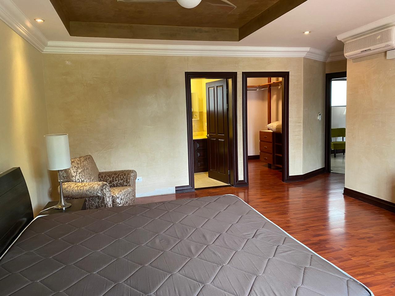 Se alquila apartamento ubicado en Escazú, San José. El inmueble cuenta con 3 habitaciones, 3 baños, tiene walking closet, sala de TV, espacio pequeño para 1 oficina, sala, comedor, terraza, cocina, cuarto amplio de pilas y cuenta seguridad 24/7.