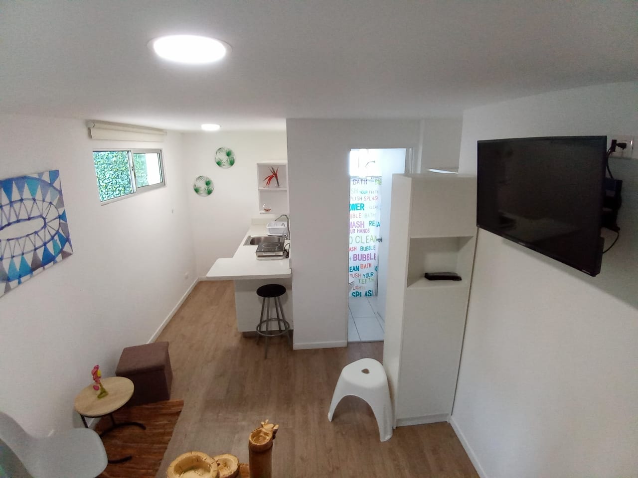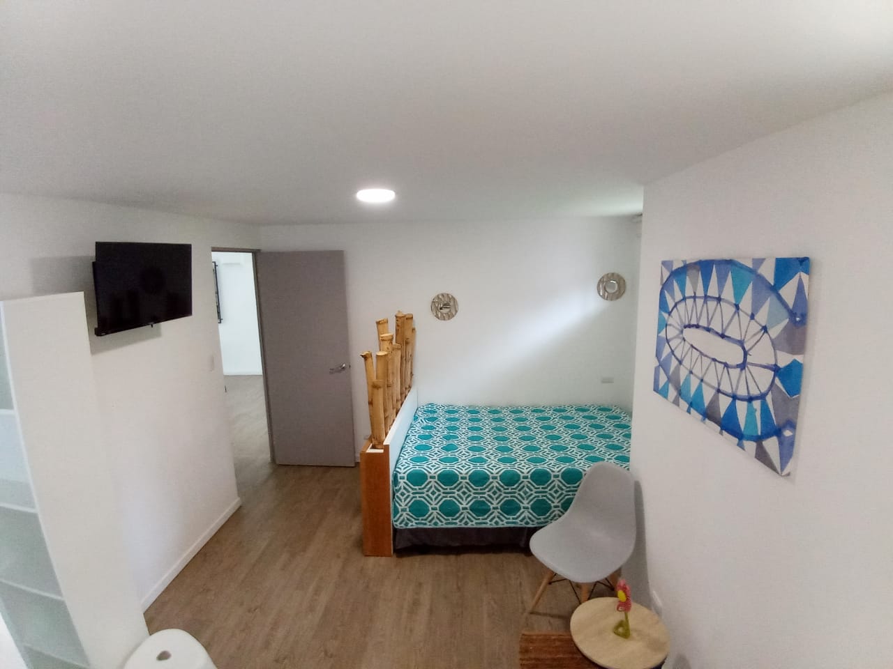 Se alquila apartamento amueblado tipo estudio para 1 persona ubicado en Escazú, San José. El inmueble comparte centro de lavado, terraza y jardín con otros inquilinos. No tiene parqueo, ubicado en un barrio cerrado con seguridad, a 100 metros de la Paco.