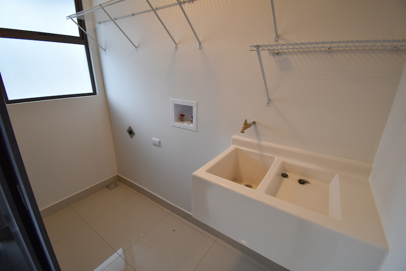 La ventana del baño es semblasteada, también tiene cuarto de pilas con espacio para lavadora, secadora, pila de lavar, dotado de repisas en caso se desee tomar como bodega, sala, comedor, cocina. El piso es de porcelanato Español, mueble de cocina en melanina y sobre de granito natural, freno en todas las gavetas o puertas del mueble de cocina, grifería desmontable con el objetivo de lavar utensilios grandes o el mismo fregadero con facilidad, extractor de grasa instalado en el mueble, cortinas en todas las ventanas, excelente iluminación y ventilación natural.
