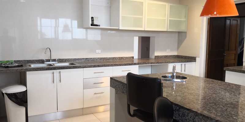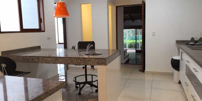 Descripción de la Propiedad: Casa de una sola planta con desniveles, pisos de cerámica, mármol y porcelanato. Posee un recibidor con patio de luz interno integrado a una sala con chimenea. Esta área tiene un desnivel que comunica a pequeña oficina con vista a la sala de TV y baño de visitas, hay otra área para el refrigerador con amplia cocina ventilada e iluminada con muebles modernos, desayunador con sobres de granito, horno y plantilla de gas con extractor. Tiene un amplio cuarto de pilas con área de tendido, cuarto de servicio con baño, 2 parqueos bajo techo y 2 sin techo amplio.
