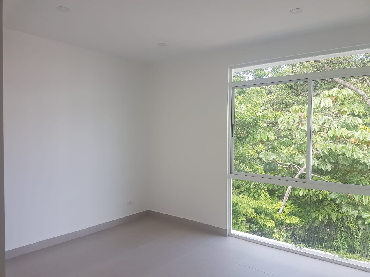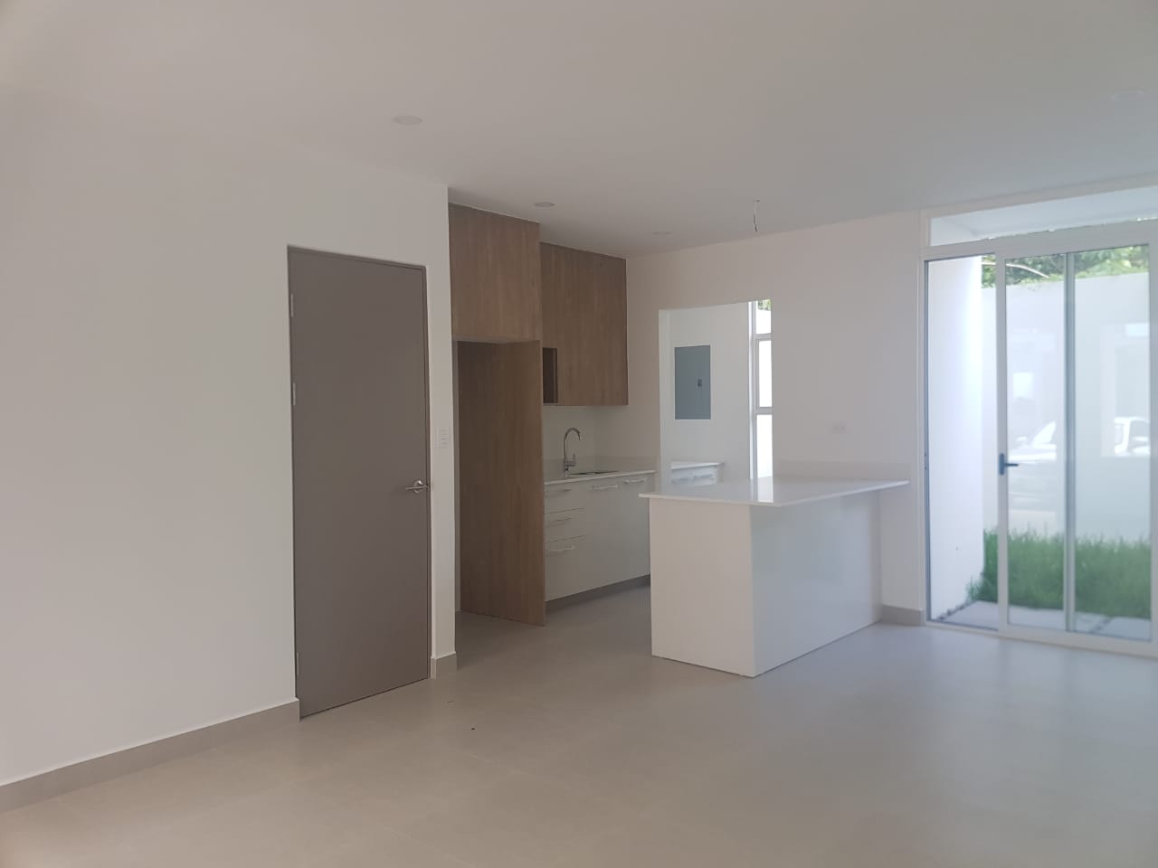 Se alquila casa ubicada en Santa Ana, San José. El inmueble cuenta con 2 habitaciones, 3 baños, sala, comedor, cocina integrada, medio baño y jardín pequeño y parqueo para 2 automóviles. Está situada en un lugar estratégico, ya que es casa esquinera y con el parqueo de visitas a la par y no tiene vecino. Condominio cuenta con piscina, rancho, gym y seguridad 24/7.
