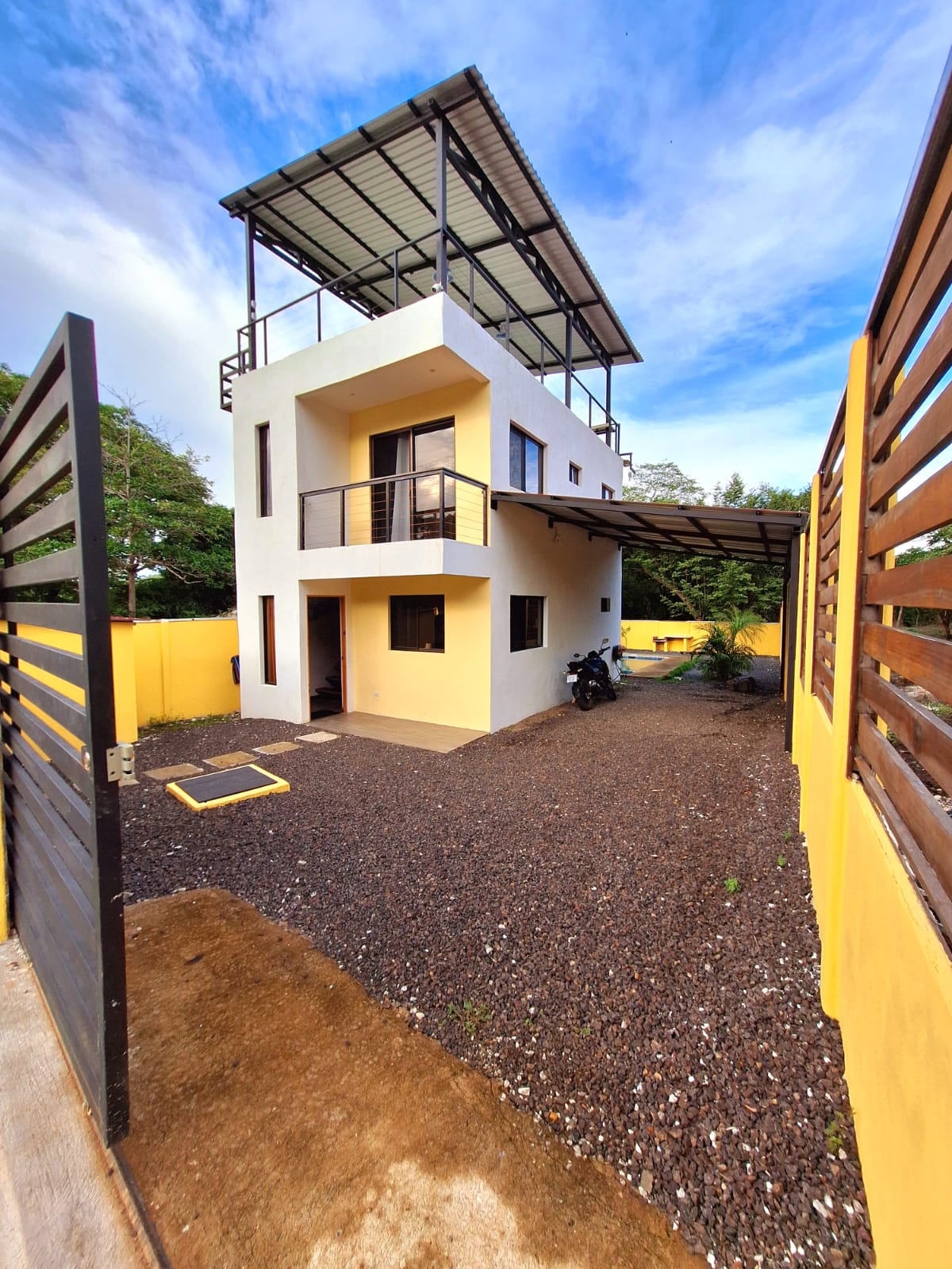 Detalle: 2 dormitorios, 2 baños, garaje, tanque de agua potable con bomba Terraza en el techo con vista parcial al mar Muro perimetral y cámaras de seguridad A 2 km de la playa de Playas del Coco Amueblada